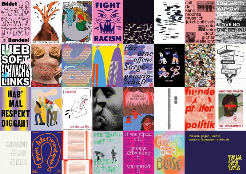 Das Aktionsbündnis ›Verlage gegen Rechts‹ hat einen Aufruf für ›Plakate gegen Rechts‹ gestartet, daraufhin sind hunderte Einsendungen eingegangen: Plakate für eine radikal vielfältige, demokratische Gesellschaft.